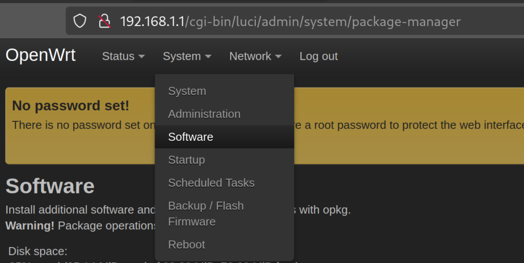 After accessing the WebGUI, we will need to navigate to some certain areas to install required packages for the WiFi card drivers as well as the Access Point package.